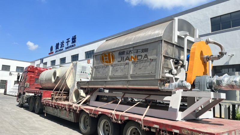 在五車奔赴客戶的貨車中,4臺盤式(PLG-2500*4)、4臺盤式(PLG-2500*10)發往四川,1臺滾筒刮板干燥機(TG-19/32)發往上海,1臺滾筒刮板干燥機(TG-1.9/3.2)發往廈門。